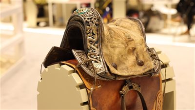 "سروج" صينية عمرها 400 عام في جناح جمعية الإمارات للخيول العربية بمعرض الصيد والفروسية