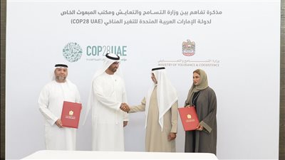 "وزارة التسامح والتعايش "و"رئاسة COP28 "توقعان مذكرة تفاهم لتفعيل قيم التسامح والأخوة الإنسانية خلال (COP28)